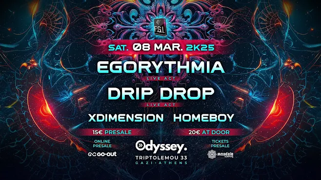 Η FSI Events παρουσιάζει ένα lineup που δεν θα θέλετε να χάσετε, με τα live των Egorythmia & Drip Drop. Μαζί τους οι XDimension και Homeboy. Μην χάσετε αυτήν την επική βραδιά!